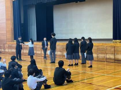 続いて、バスケットボールU14ジュニアオールスター出場と社会科作品総文祭出展の表彰状伝達式が行われました。