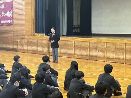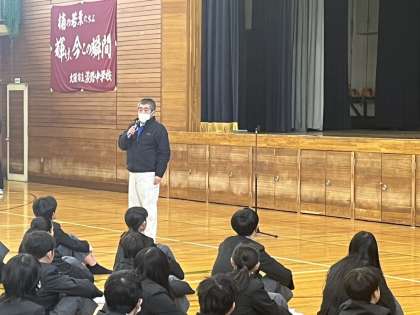 最後に生活指導担当の諏訪先生からいじめについて、冬休みの過ごし方についてお話がありました。