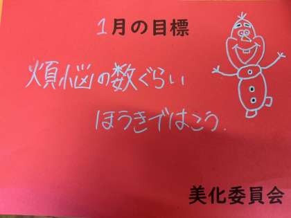 今月の目標は「煩悩の数ぐらいほうきではこう」に決まりました。