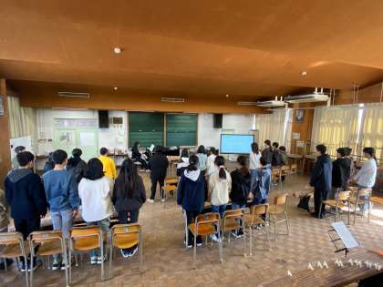 先ずは冒頭、中学校の音楽科是永先生の伴奏で校歌を歌いました。