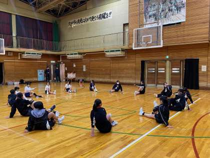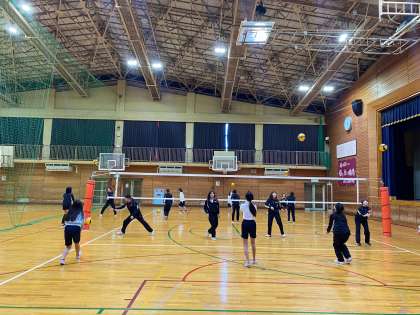 グラウンドでの女子テニス部・サッカー部・陸上部の運動に続いては、屋内スポーツ部は画像順に体育館で女子バレー部・女子バスケット部です。