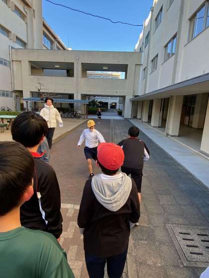 また、男子バスケケット部は屋外で基礎練をしていました。