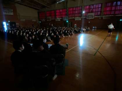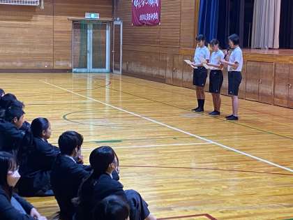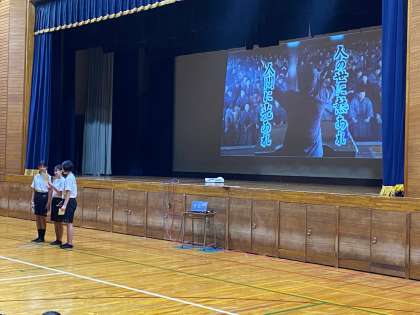 部落研の太鼓演奏が終わり、続いてパワーポイントを使って、部落研の1年間の活動報告がありました。