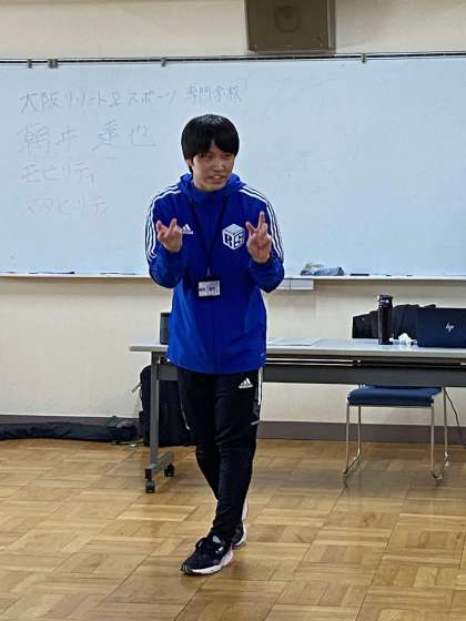 画像は第一会議での大阪リゾート&スポーツ専門学校によるスポーツトレーナー体験です。