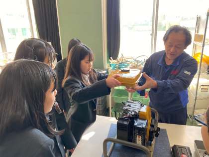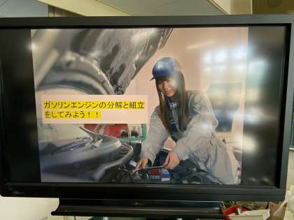 画像は、第二理科室で行われた大阪自動車整備専門学校による、ガソリンエンジンの分解・組み立て実習の様子です。