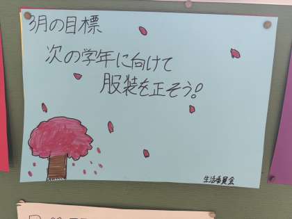 3月の目標は、「次の学年に向けて、服装を正そう」です。