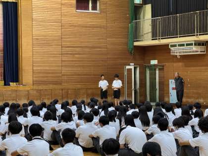 淡路中学校では、生徒会執行部、学年生徒会、部落問題研究会、朝鮮文化研究会、国際文化研究会、障がい児・者研究会、部活動部長会議のリーダーが集まり、「仲間の日」を企画実施しました。また、西淡路小学校の6年生も参加しました。