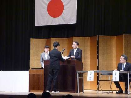 本校生徒が、ロボットコンテスト(いかに早くペットボトルを運べるかを競い合う大会)で好成績を上げ、教育長表彰を受けました。