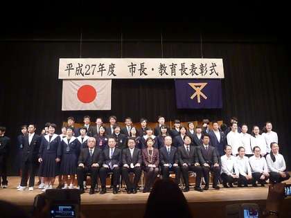 昨年和歌山県で開催された「きのくにロボットフェスティバル2015」。技術部で製作したロボットが大活躍し、中学生部門2位&実行委員会副会長賞に輝きました。その功績により、今回大阪市教育長表彰の受賞対象者に選ばれました。