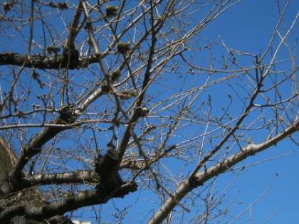 校庭(芝生広場)に大きな桜の木が並んでいます。本校の芝生は、現在、冬用の芝が育っているので青々としていますが、桜の木々はまだ冬の装い。しかし近づいてみると、やわらかな緑色に染まった花芽を確認することができました。