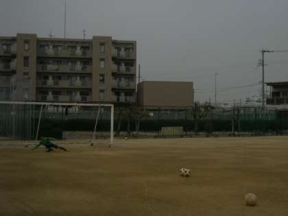 サッカー部ではゲーム形式の練習のほか、ゴールキーパーが顧問の先生と一緒に汗を流していました。ペナルティーキック時の対応について、実際に先生にシュートしていただき、瞬時の反応を高める練習を行いました。