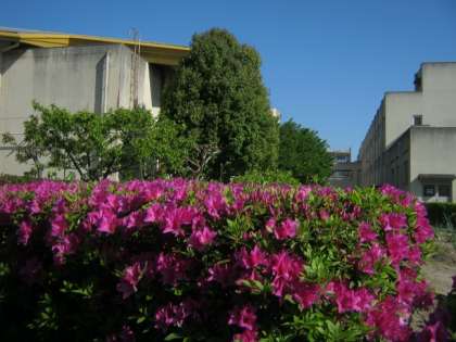 中庭のツツジの花が満開となり、校内を美しく彩っています。