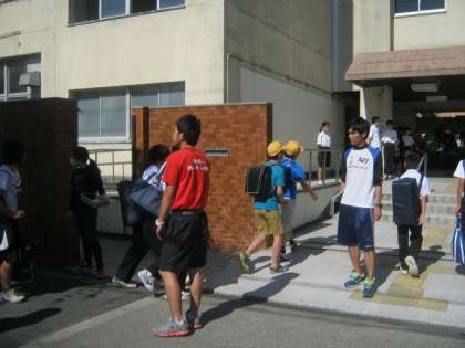 金曜日は、隣接する西淡路小学校の6年生が中学校に登校し中学校で学習する日。今朝もランドセルを背負った6年生が次々にやってきました。