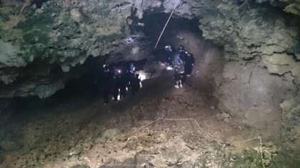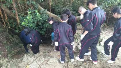 平和ガイドの方からお話を聞くグループ、ガマに入るグループの2班体制です。