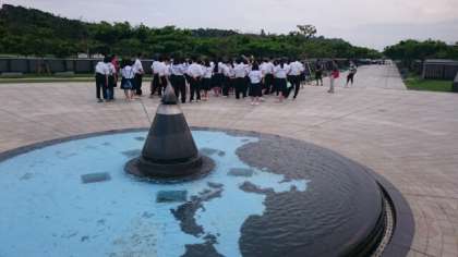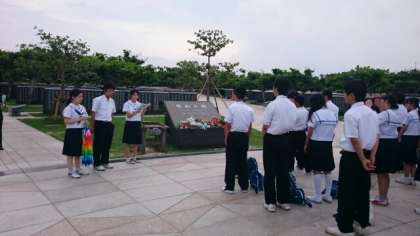 平和祈念公園の平和の礎(いしじ)前にて、平和セレモニー。皆で折った千羽鶴を捧げました。(一連の写真は祈念公園のスナップです。)