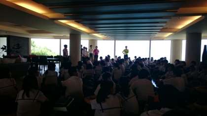 一行はホテルに到着しました。生徒の健康状態も概ね良好です。このあとはいよいよ海水浴です。