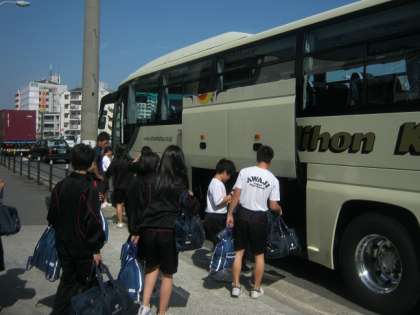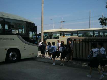 目的地は和歌山県日高町にある少年自然の家。おだやかな内海が広がる場所で、カヌーやカヤックなどの海洋体験を行います。今朝は体操服にボストンバックのいでたちで、1年生がつぎつぎに登校してきました。