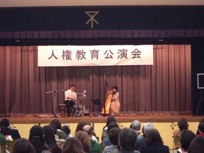 この期間中の行事の一つとして、「東淀川区人権啓発推進協議会」と「東淀川区役所」が共催で「生きる喜びを伝えるハープ&パーカッションの調べ」と題して開催されました。