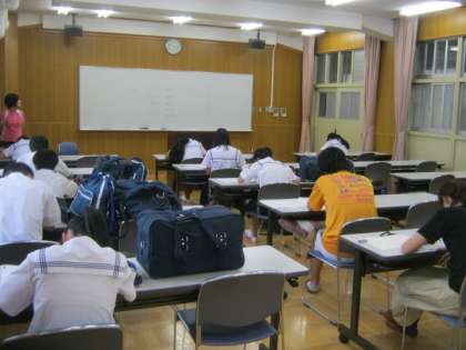 今回は、年3回実施される「漢検」の1回目。検定を希望した生徒たちは、中学卒業程度(3級)や高校卒業程度(2級)の問題にそれぞれ挑戦します。(おおむね7割の正解で合格基準に達するとのこと。)