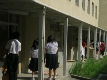 東館1階の多目的室の改修工事が終わり、部活動で登校していた各クラブの皆さんが机やイスなどの搬入を手伝ってくれました。