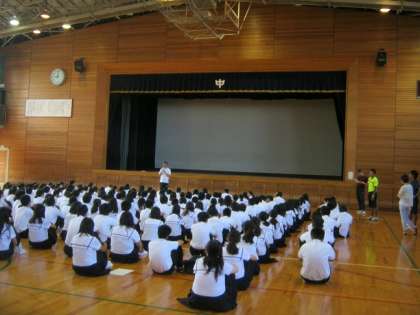 久しぶりに全校生徒が集まります。日焼けした笑顔を見ていると、楽しい夏休みを過ごせたことがよくわかります。お家のお手伝いをはじめ、自身の目標や課題は達成できましたか?