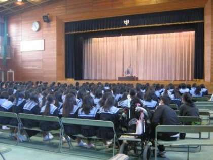 土曜授業の3時間目は、体育館で保護者の方々とご一緒に、キャリア講話と上方落語の鑑賞を行いました。