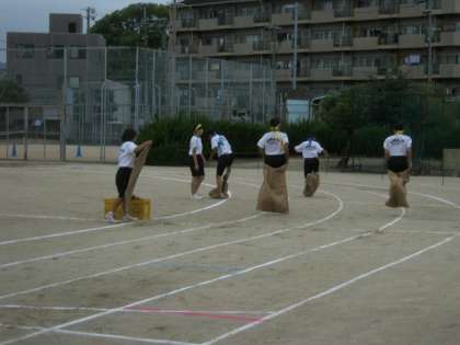 2人3脚ではクラスメイトと息を合わせるのに四苦八苦。足の運び方の違いで大きく順位が変わります。大きな麻袋に両足を入れて、ピョンピョン飛び跳ねる競技など、バラエティあふれる種目が続きます。