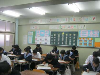 年5回定期テストが行われますが、2学期の中間テストは最も範囲が広く、1学期末から現在までの約2ヶ月間の学習内容が出題されます。(テスト勉強、大変です!)テストが始まると教室内はピリッとした緊張感に包まれ、ペンを走らせる音だけが耳に届きます。