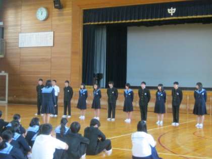 先日、部活動引き継ぎ会が行われ3年生が後輩たちに心のこもった熱いメッセージを伝えました。