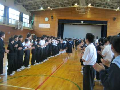 最後は1,2年生が「花道」をつくり、3年生を送ります。少し照れくさそうに花道を進むキャプテンたち。心温まるとても素敵な会になりました。
