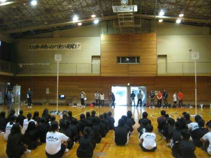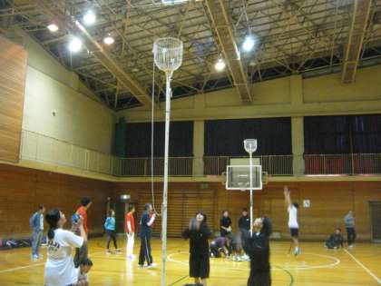 生徒の皆さん、頑張ってます(ボールを入れるのが難しいです)