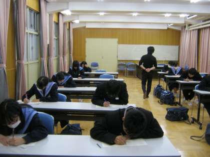 1学期に行った検定以来、今年2度目の「漢検」です。会場には、各学年の希望生徒が集まってきます。この検定試験は、自分の習熟(学習)状況にあわせて階級を選んでいきます。今回は、2級(高校卒業程度)・準2級(高校在学程度)・3級(中学卒業程度)・5級(小学6年生修了程度)と、幅広い階級にチャレンジしました。