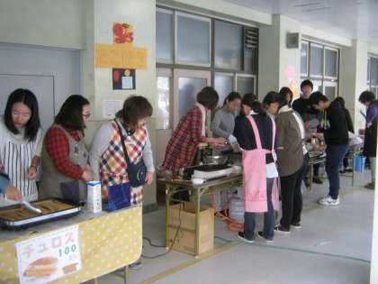 PTAや地域の方々が屋台(焼きそば・唐揚げ・ホルモン焼き…)を出され、校内はこうばしいソースの香りが広がります。淡中生も屋台のお手伝いに頑張ります!「美味しいタコ焼きいかがですか!!」の元気な売り声が響き、カーニバルを盛り上げていました。