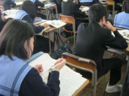 担当の先生が作成されたプリントをもとに、教科書の文章から正解を見つけます。英語や日本語で答えるものなど、出題内容もバラエティ豊富。皆さん、懸命に教科書を見ながら、学習に取り組んでいました。