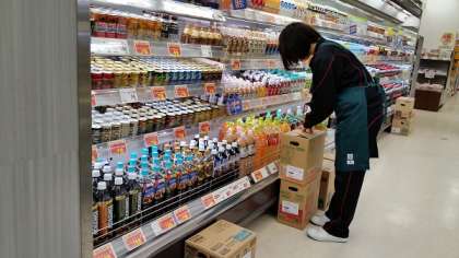 「イズミヤ」さんで、商品の陳列をお手伝い