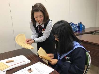 金融機関のお仕事は窓口業務をはじめ、多種多様です。銀行員の方にいろいろと教わりながら、慣れないお仕事に頑張ります。実際に体験することで、より「お仕事」の内容がわかるでしょうね。あと1日、しっかり取り組んでくださいね!