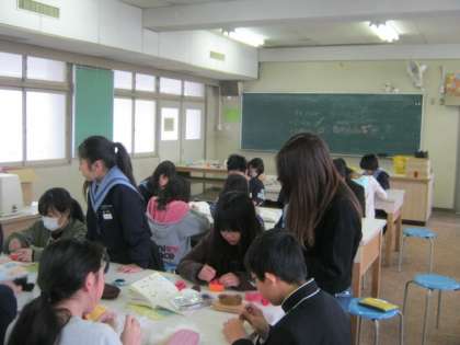 家庭科(手芸の実習です。中学生がお手伝いします)
