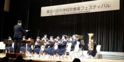 「第6回東淀川区中学校 吹奏楽フェスティバル」が2月1日土曜授業の午後、クレオ大阪北ホールで開催されました。東淀川区中学校吹奏楽フェスティバル実行委員会(東淀川区青少年指導員連絡会)の皆様が、区内の中学生のために、企画から準備、当日の駐輪場の整理係なども担っていただき、各校の練習の成果を発表しあう場を作っていただきました。