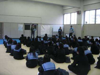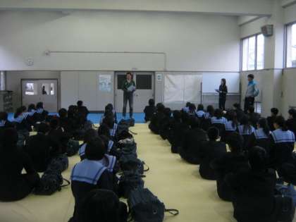 進路担当の先生より、出願の諸注意がありました。願書や自己申告書などの出願書類や高校までの交通費など必要な持ち物を確認します。また受験当日にそなえて、駅時刻表をチェックしておくなど、事前にやっておいた方が良いことなども教わりました。