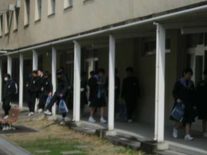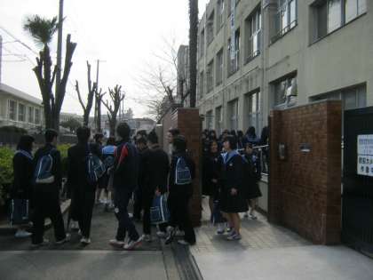多目的室に集合後、志望校ごとにグループになって出かけます。くりかえし持ち物を確認しながら、JR・阪急の駅にむけて学校を出発しました。雨が心配されましたが、太陽が顔をのぞかせ、とっても暖かくなりました。(寒くなくて良かったね)