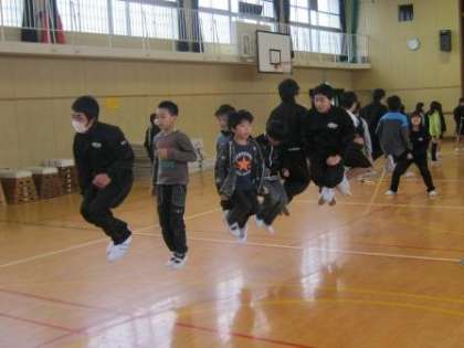 はじめは、「かたい」雰囲気でしたが、「長縄跳び」をしたりするうちに、笑顔が広がり、歓声が響くようになりました。そして、中学生代表の終わりの挨拶で交流会を終わりました。