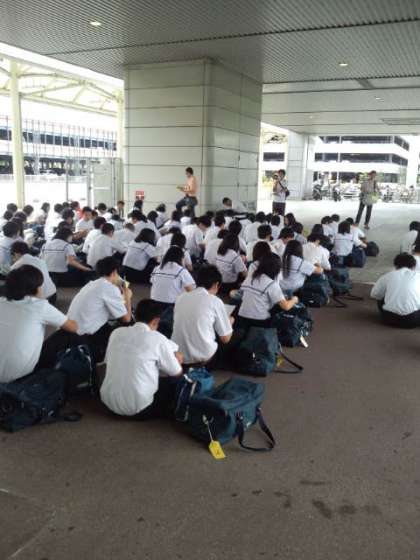 さて、写真は伊丹空港での集合の様子です。心配された台風も来ず、無事出発しました。