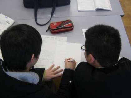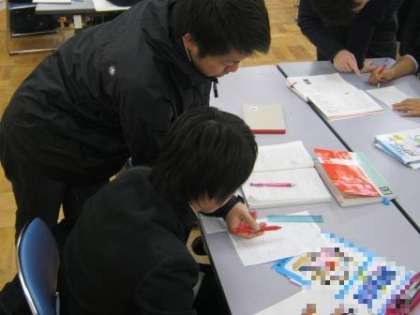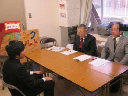 受験する私立高校の過去問(赤本)に挑戦しボランティアの人に質問している姿、リスニング問題に挑戦している姿、また、地域の方に面接官をしていただき「模擬面接」に取り組む姿が見られました。