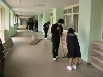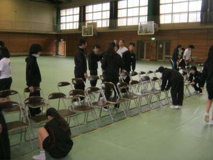 明日の入学式の準備のため、新3年生は校舎内の清掃や、学校周りの清掃をしてくれました。新2年生は式場内のシート敷きや、新入生の椅子・来賓席・保護者席のセッティングなど、式場設営を行ってくれました。