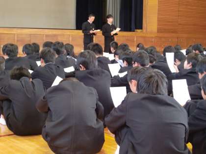 次に、部長の代表生徒から、活動するにあたってのルールなど「部活動における確認事項」ついて話がありました。
