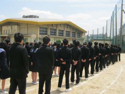 生徒たちは、「押さない」「駆けない」「しゃべらない」をしっかり守り、緊張感を持って訓練することができました。