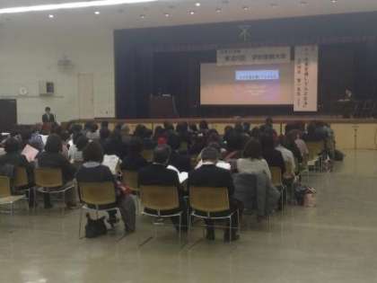2月13日(木)、東淀川区民ホールで「東淀川区学校保健大会」が開催されました。この大会は、東淀川区学校保健協議会が主催で行われる大会で、区内の市立小・中・視覚特別支援学校の学校医先生、学校歯科医先生、学校薬剤師先生、学校教職員、PTA会員、区役所、保健福祉センターの方々で組織・運営されています。