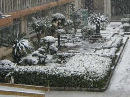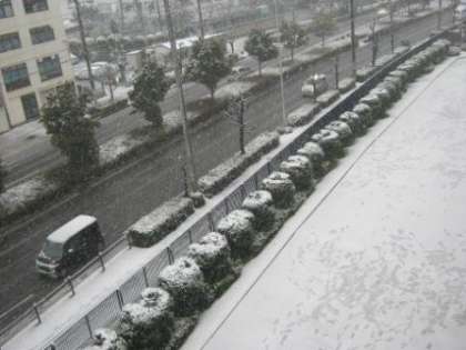 大阪では珍しい雪に、朝からテンションが高い生徒の皆さん。