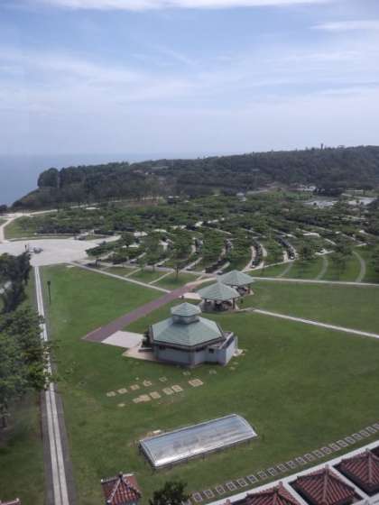 左 :平和の礎を平和祈念資料館展望室から