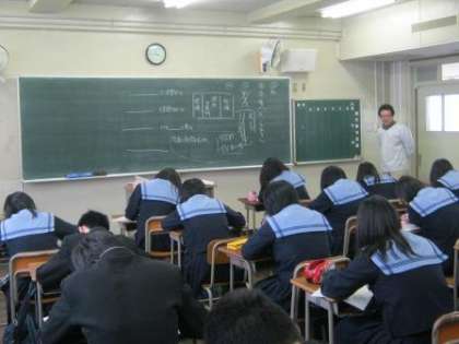 今できることを、やり切る。国語の先生が、入試という限られた時間に、小論文や作文を書くコツやポイントを説明。授業ですでに学習したことの復習とはいえ、生徒の皆さんの眼は真剣そのもの。「頭で考えると同時にメモをつくる」、「『〜と思う』ではなく、『〜である』と力強く言い切る」などの説明の後は、時間を区切って実際に「書く」トレーニング。